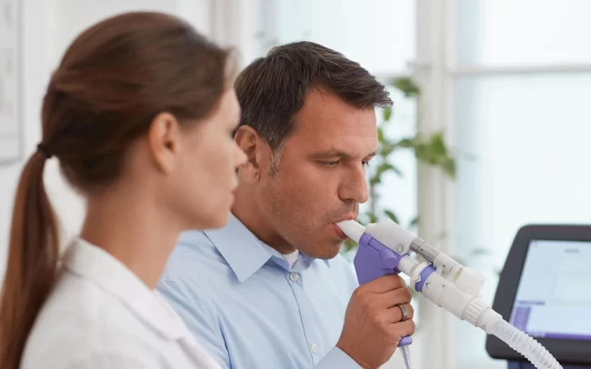 A Doença Pulmonar Obstrutiva Crônica (DPOC) é um grupo de condições, como bronquite crônica e enfisema, que bloqueiam irreversivelmente as vias aéreas, prejudicando a respiração. O principal fator de risco é o tabagismo, além de exposição a poluentes e infecções respiratórias. A doença evolui lentamente, causando sintomas como falta de ar, tosse com secreção, chiado e cansaço. O diagnóstico é feito por exames como a espirometria, que confirma a obstrução das vias aéreas. Procurar um especialista é essencial para um diagnóstico e tratamento adequados.